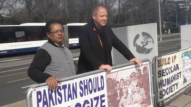 স্থানীয় সময় শুক্রবার ইন্টারন্যাশনাল ফোরাম ফর সেকুলার বাংলাদেশের সুইজারল্যান্ড শাখা দেশটির রাজধানী জেনেভার ব্রোকেন চেয়ার স্কয়ারে অবস্থিত জাতিসংঘ ভবনের সামনে এই প্রতিবাদ কর্মসূচির আয়োজন করে। এতে অংশ নেন দেশটিতে বাংলাদেশি প্রবাসীরা।